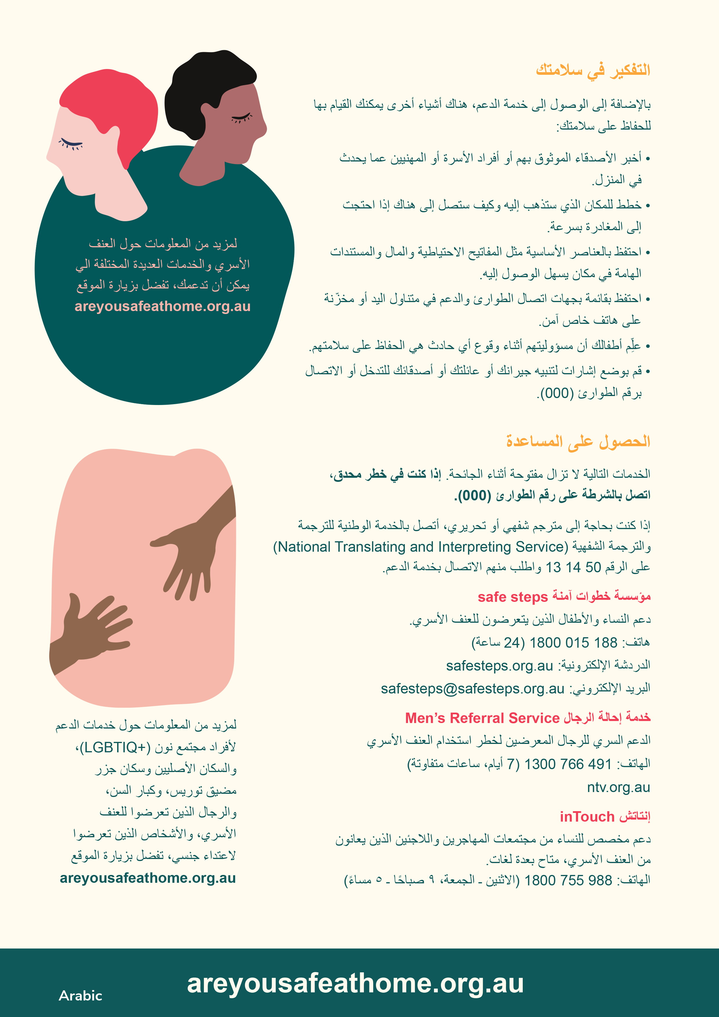 This flyer includes information for people experiencing family violence translated into Arabic.
