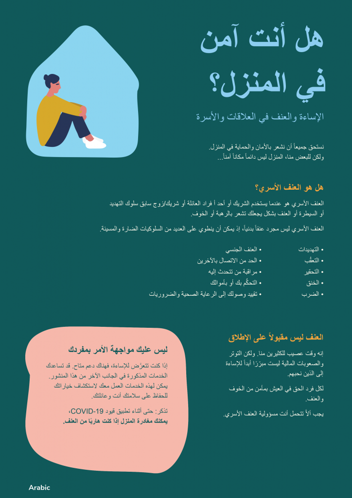 This flyer includes information for people experiencing family violence translated into Arabic.